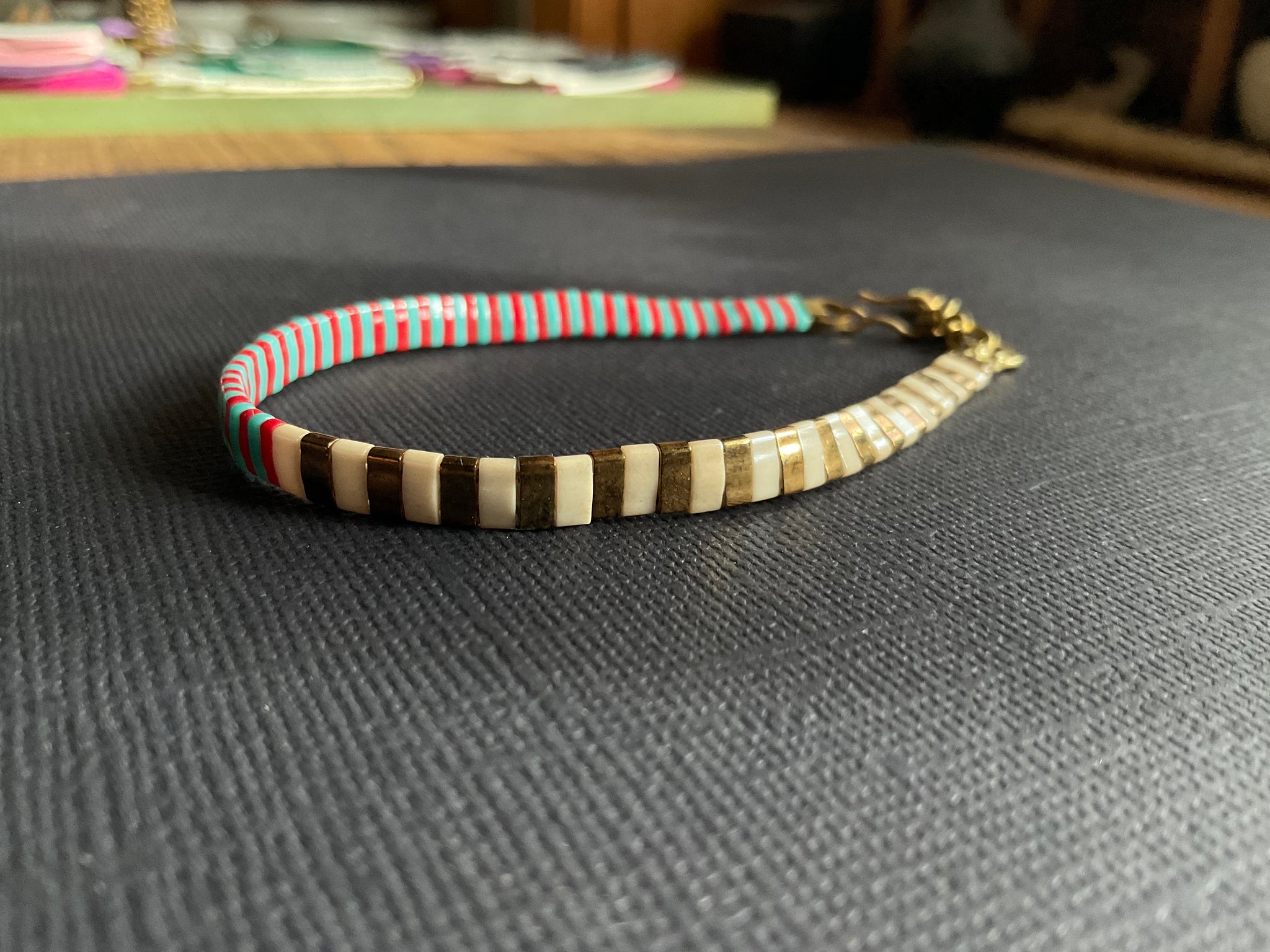 Tila beads on silk/poly cord